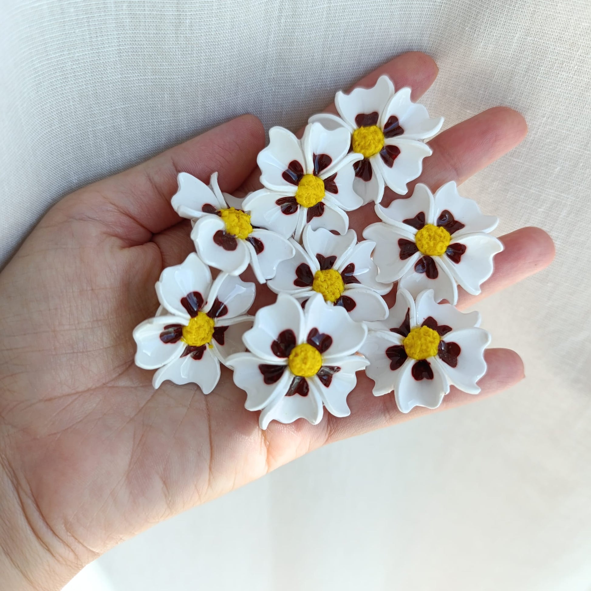 Brincos artesanais inspirados nas Estevas Algarvias, flores típicas da região.