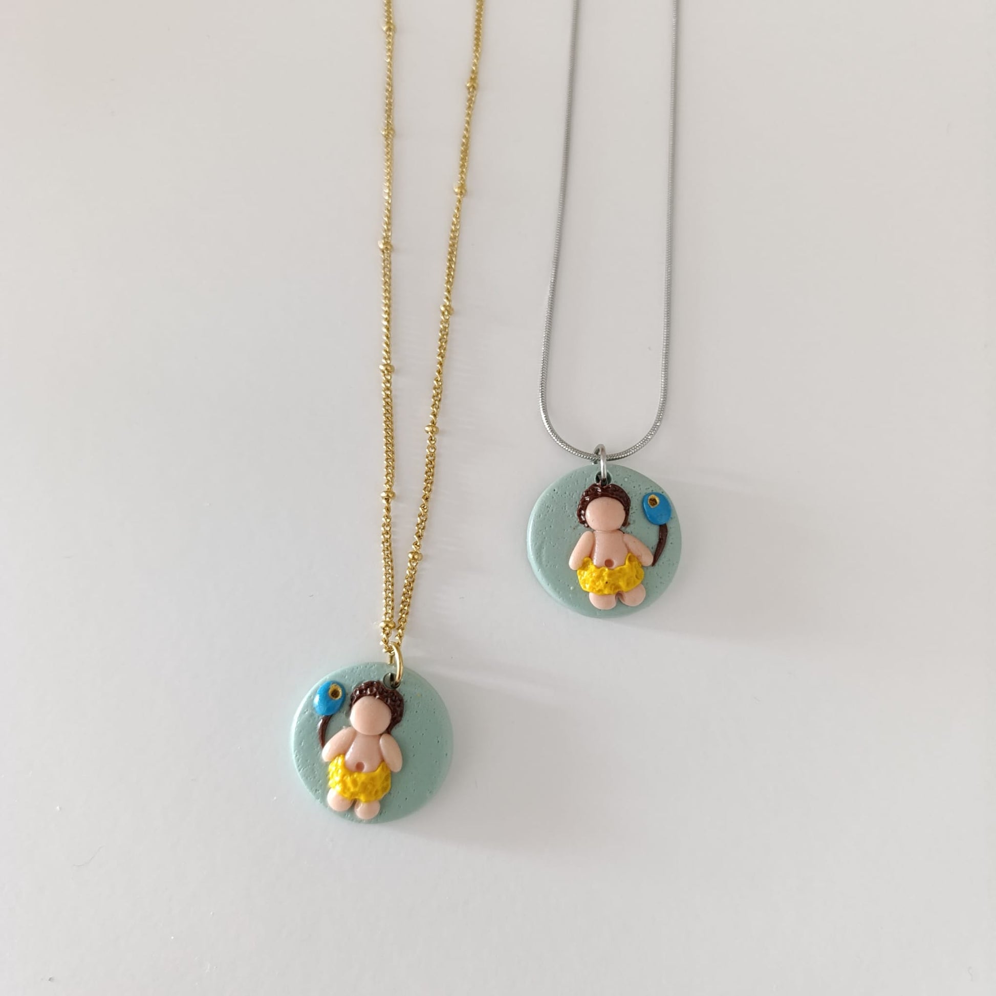 Colar em argila de polímero, elaborado à mão com cores doces e mimosas.